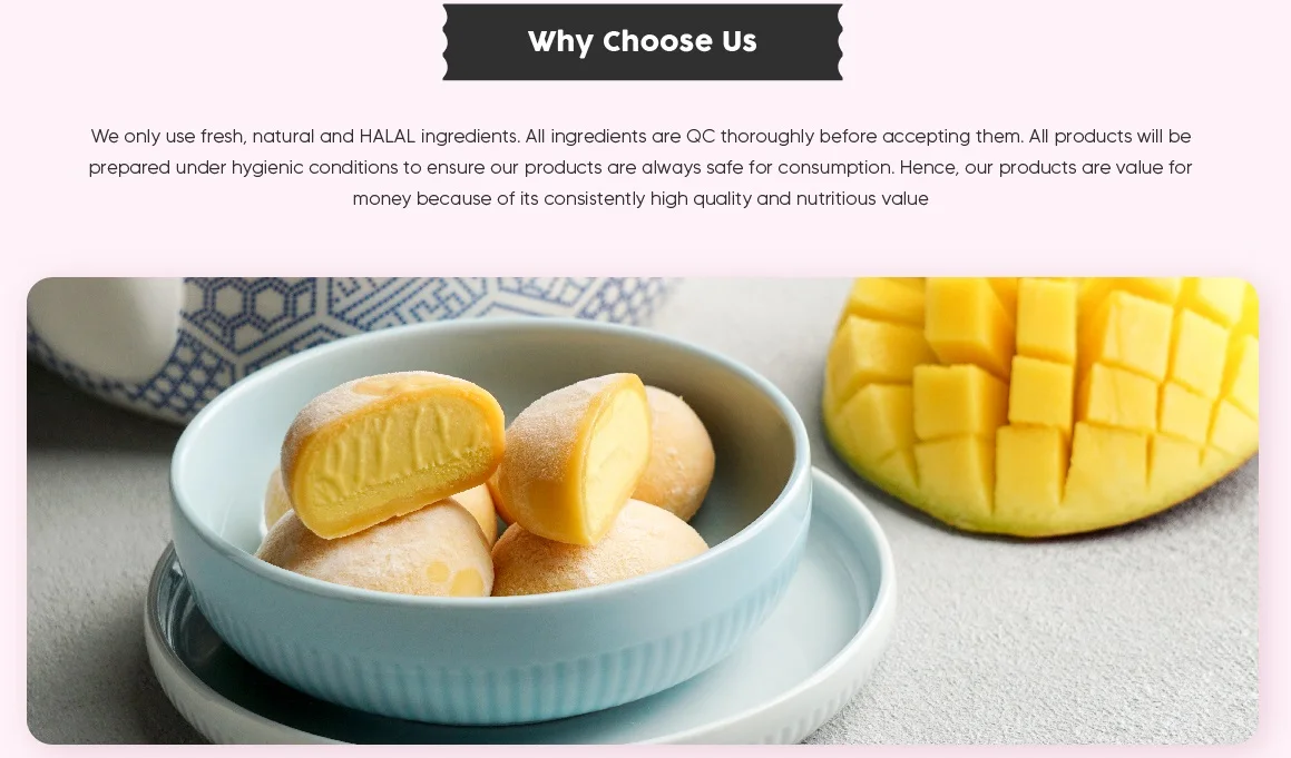 Ingredients | Glutinous rice flour, Modified starch, water, glucose syrup, sugar, shortening, yam, potassium sorbate and permitted colouring |