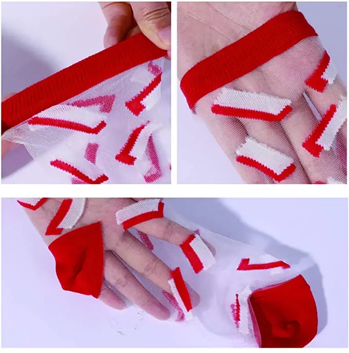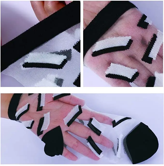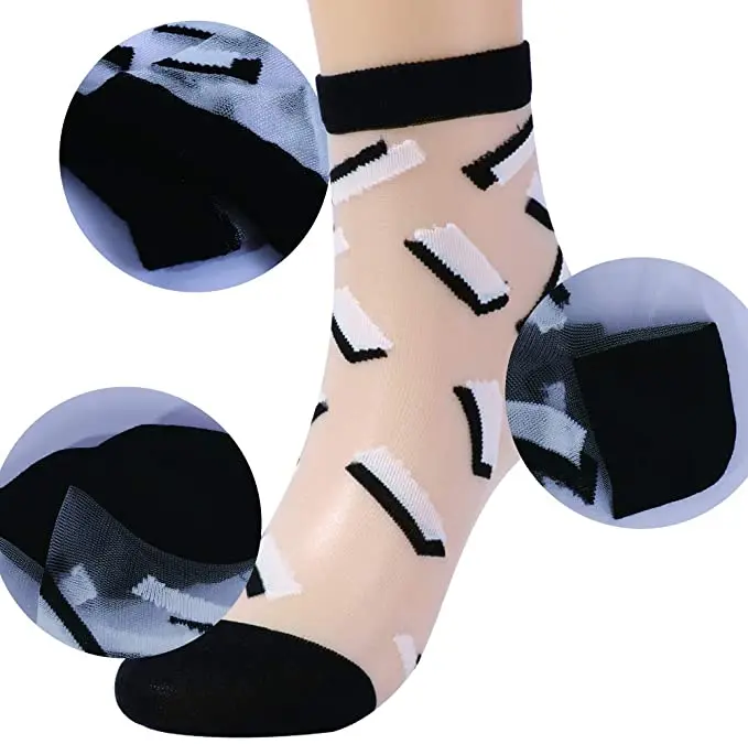 Feature | * Transparent mesh/lace socks makes your feet look very sexy and eye-catching, You could match it with your pants or shoes. Perfect gift for your female friends. * These socks material on the bottom, across the toes and around the ankle is cotton. The sheer part is silk blended fiber, which is lighter but sturdier and more see through than pantyhose material. |