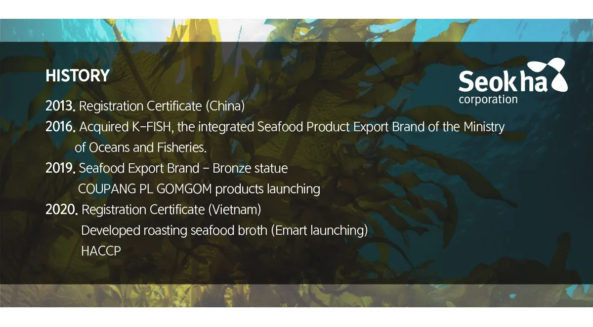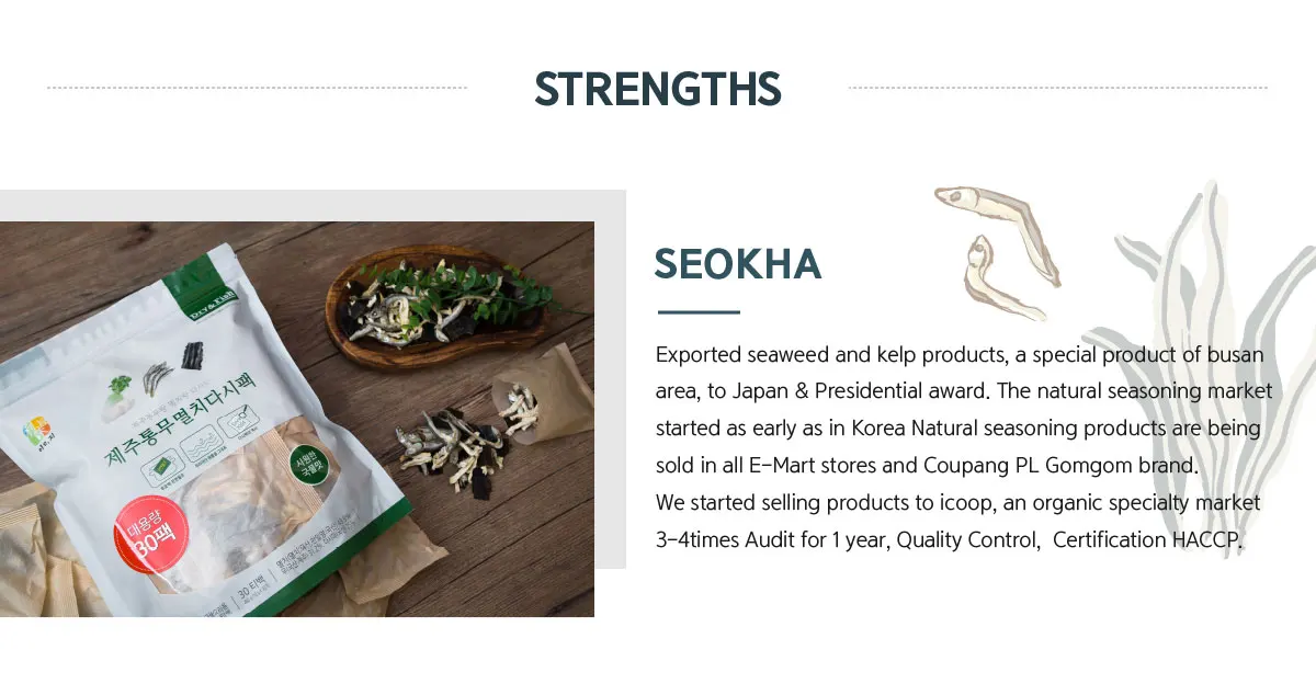 SEOKHA Corporation has long secured the Japaness market with seaweed.