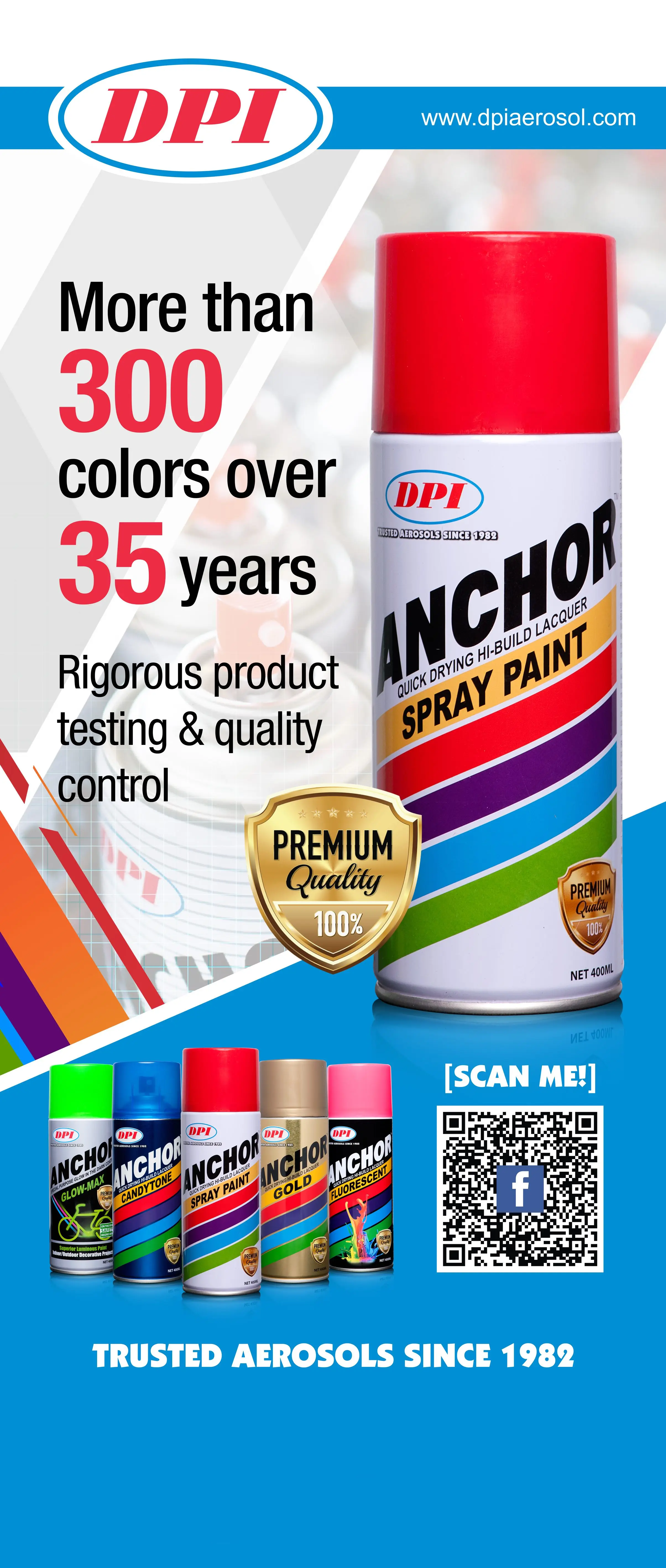 Currently available through 700 over distributors and retailers in Malaysia and beyond. Our award winning spray paints are hugely popular DPI brand offering more than 300 colours over all these years and counting.