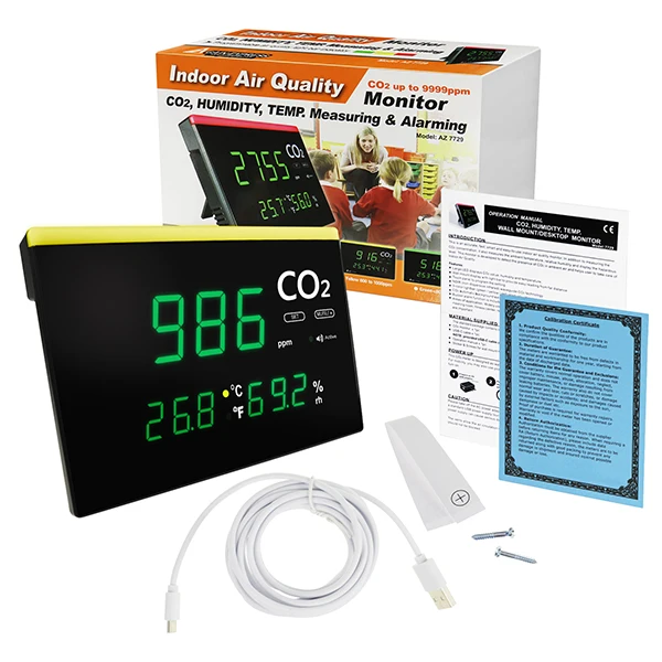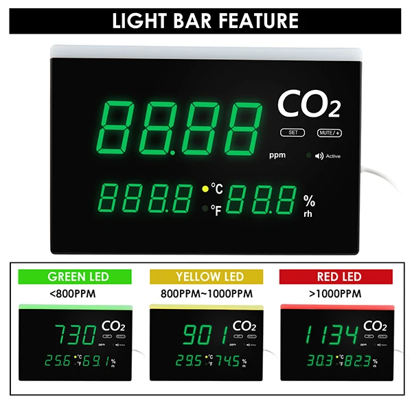 Multifunctional: simultaneous, continuous and real-time readings of both CO2, temperature and humidity level. Monitor indoor air quality with only one instrument.
