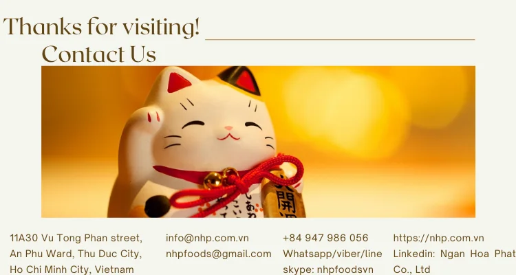 Ngan Hoa Phat Trading Service Company  is a wholesale company that supply fruit products include fresh, frozen and dried fruit from Viet Nam since 2017. We develop our business in multi field with real estate, design and construct, and export Viet Nam agricultural products world wide. Our strength and core value is our supply chain optimization from various factory and local agent, and logistics, that allow us offer customer with special demand, price and standards. All you need is let us know your inquiries, we take care every littlest thing, to ensure your satisfaction.