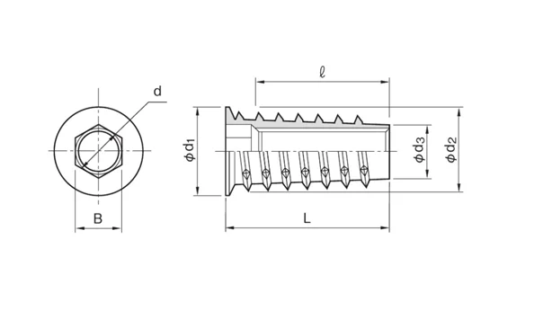 D x L(mm) | Product No. | L | ℓ | φd2 | φd3 | Material | Hole size before threading | MOQ |