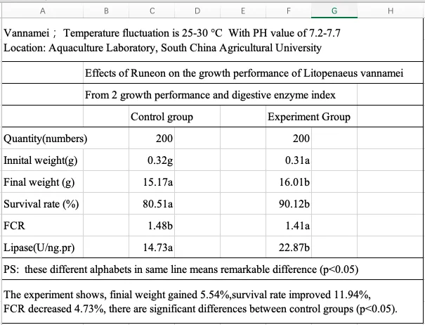 1. For shrimps and other crustaceans which could not secret bile salts and cholesterol, adding Runeon could promote metamorphosis