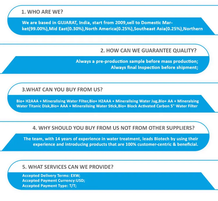 Incepted a decade and back, with BioTech Industries, the promoters dreamt and envisioned revolutionizing the water treatment process in India. With integrity and commitment as an ingrained part of the practice, the group succeeded in its mission of bringing a wave of good health through good water as BioPlus (BioTech Industries) is one of the pioneers in India to introduce Alkaline Water. Since the foundation, the company understood and anticipated the need for pure and virtuous solutions that would help people stay healthy in extremely erratic lifestyles and thus since then is committed to delivering Products that ensure quality water matching up to international standards. As truthfulness is the virtue at the core of who we are and what we do, our code of values encompasses a commitment to uprightness, morals, and the essence of mutual respect for both our esteemed patrons & our team members. Consistently endeavoring to fulfill the mission, today BioPlus portfolio has solutions like Alkaline products, Antioxidant, Hydrogen Rich Water, Special filtration & purification of water. We also provide clean Air by Air purifiers and help to make food more healthy by passing through Oil Purifier. An entity representing unity and cohesiveness, BioPlus benefits from the enriching experience and deep-rooted business wisdom of the team of directors - Mr. Bhupesh Patel, Mr. Snehal Kotadia, Mr. Anil Gajera, Mr. Atul Acharya, and Mr. Rajesh Vasani whose great working synergy reflects in the wonderful solutions that the company offers. Keeping research and development as the mainstay of operations for better solutions is an engraved motto and thus, a major range of products use revolutionary technology like Electrolysis & Bioceramics technology which not only makes water H2AAA but also adds essential minerals, making water 100% mineralized.