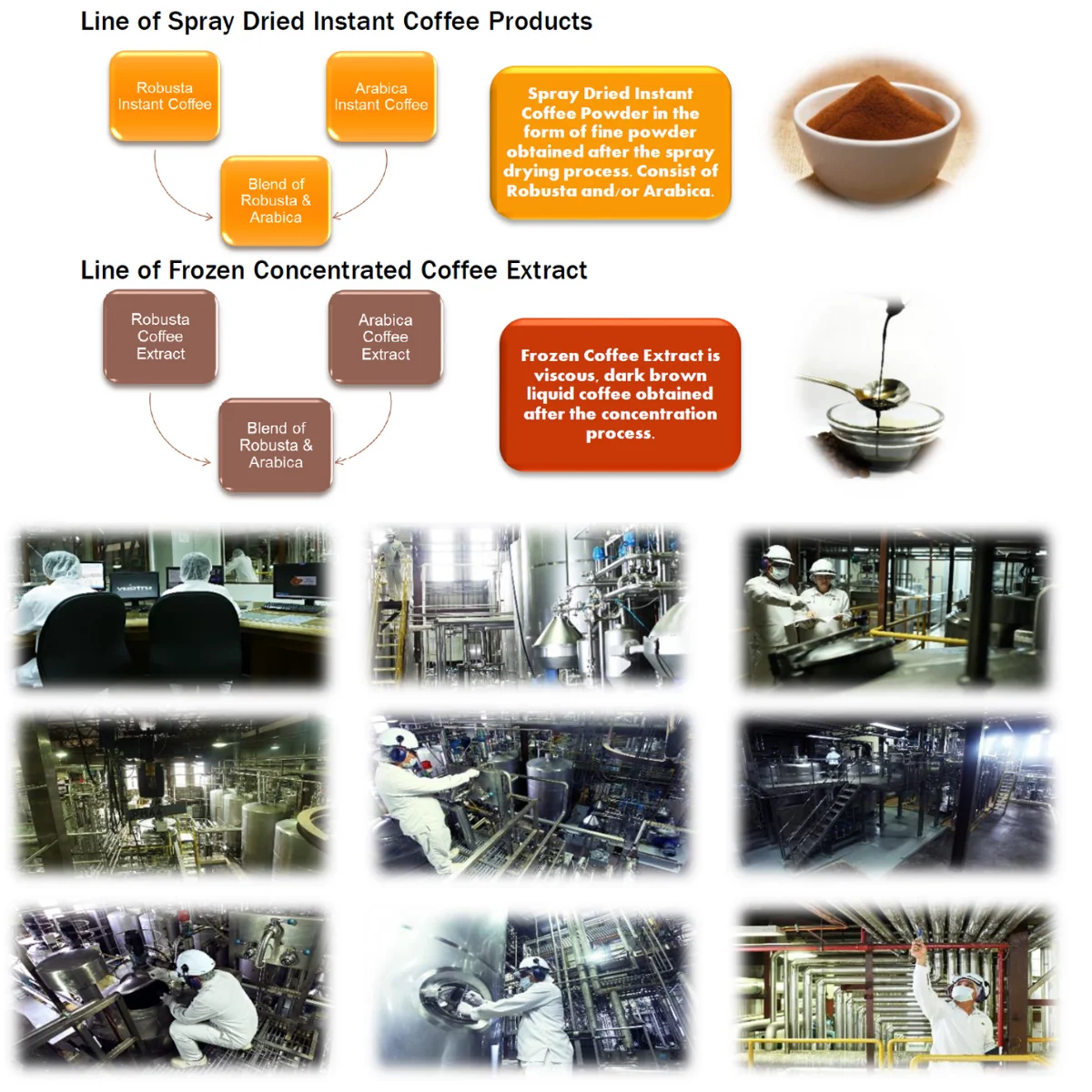 Ingredients: | 100% from green beans Arabica / Robusta/ Blend with rate 3:7; 5:5; 6:4; 2:8 |