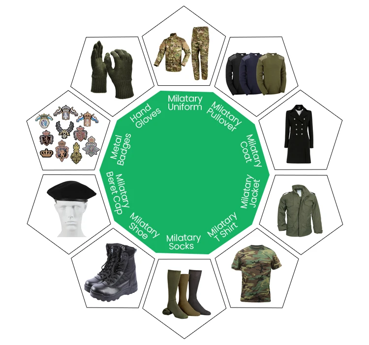 Incepted in 1963, K.D. Hosiery Mills is a renowned manufacturer, exporter and supplier of an extensive range of army uniform ,dressing accessories for civil wear, school wear and institution wear. Our rage includes Military/Army Uniform ,Military Beret Caps, Army Scarves & Mufflers, Web Belts, Military/ Army Lanyards Military Pullovers,Camouflage T Shirts,Military Boot, Army Socks, Protective Military Hand Gloves,Metal Buckles for Belts and Badges . We manufacture these garments and accessories using quality fabric such as wool, leather and cotton. These are highly acknowledged for perfect stitching, color fastness and shrink resistance features. Our garments are widely used in army and military sectors.