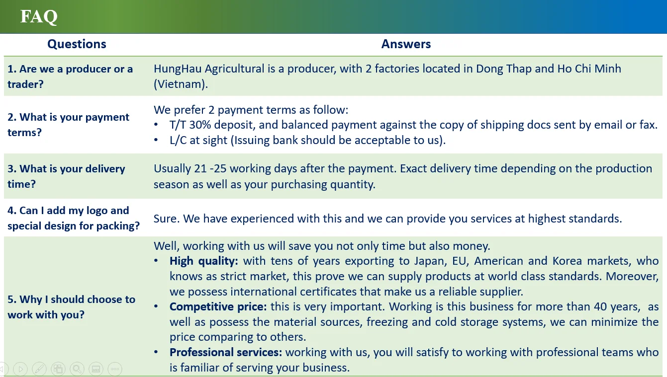 Payment term | TT 30% + 70%, or LC at sight |