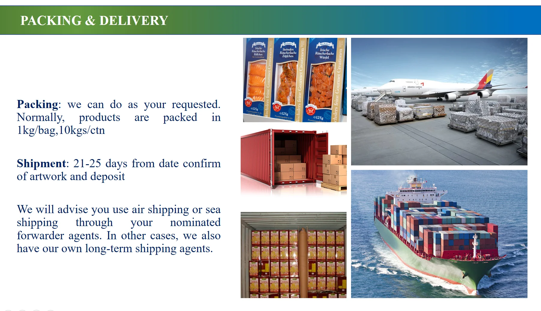 Packing | 500GR/BAG*10/CNT*2/BDLS |