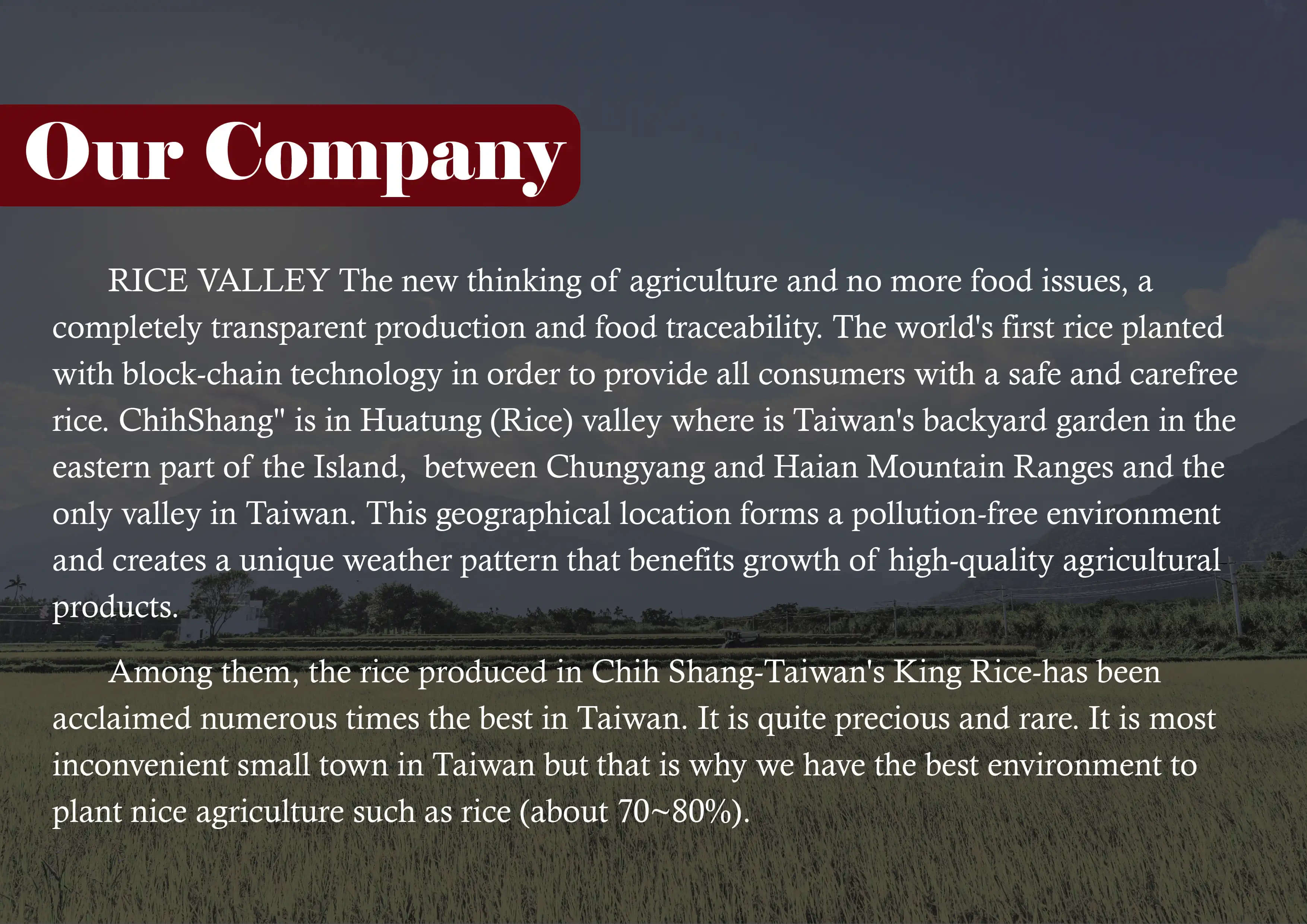 A:We come from Taitung Chihshang, Taiwan.