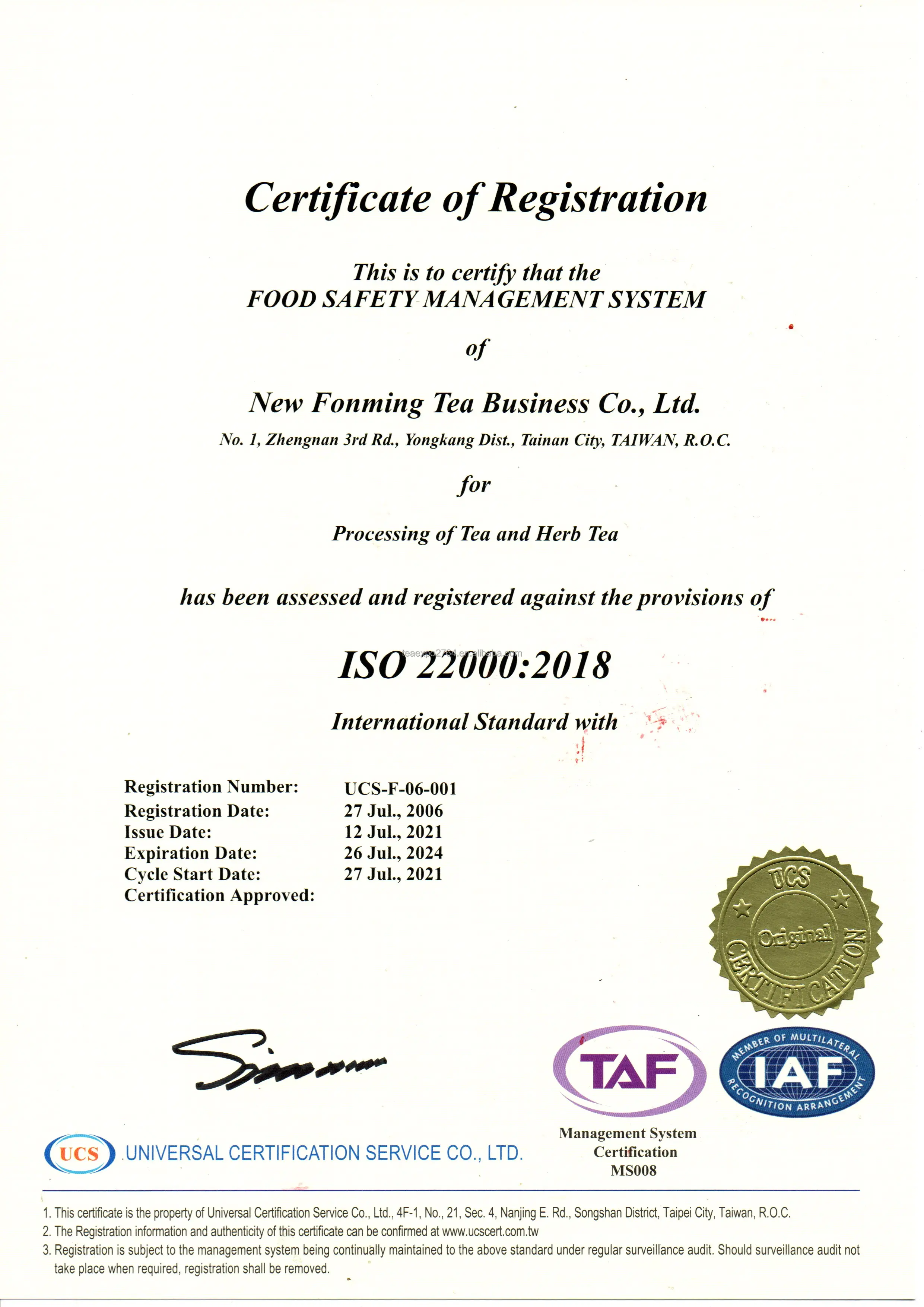 Certificate | ISO22000 HACCP |
