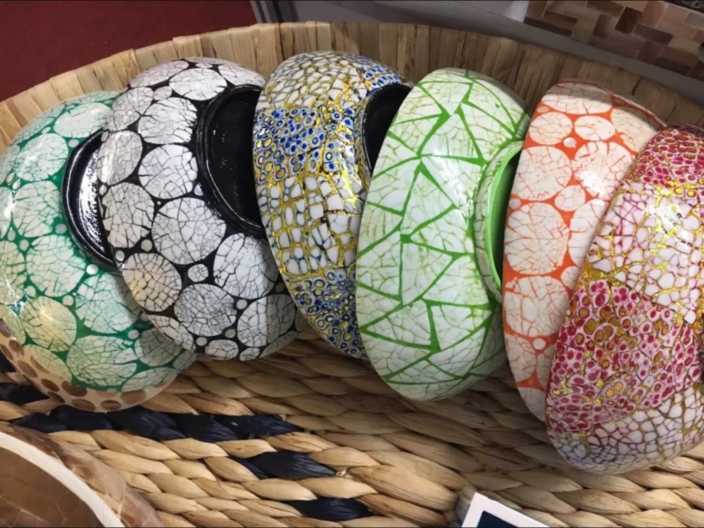 Coconut cups, lacquered coconut bowls, coconut shells are products made from natural coconut shells, the inside is a lacquered layer decorated by craftsmen with many different patterns or mussels. Many motifs on request. Products combine unique lacquer techniques and creative, skillful hands of workers to create finished products.