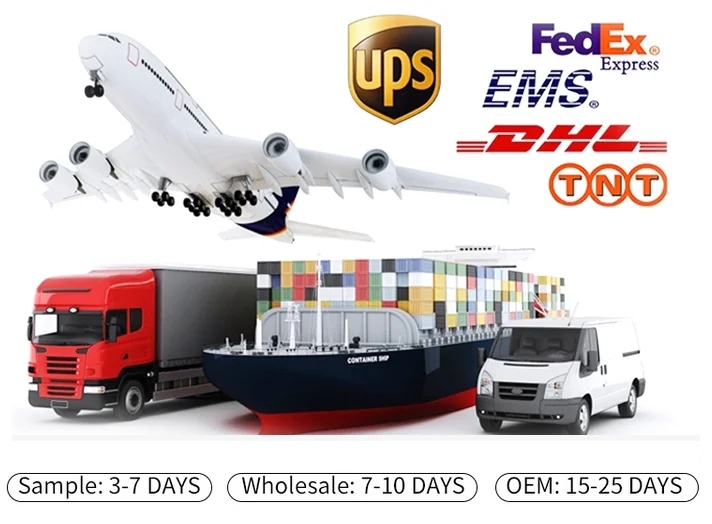 1. Sample order time : about 3 to 7 days according to the complexity of the sample . 2. Bulk order time : about 13 to 24 days ,depending on product order details . 3. If urgent ,we can speed up as we are manufacturer of owning factory .