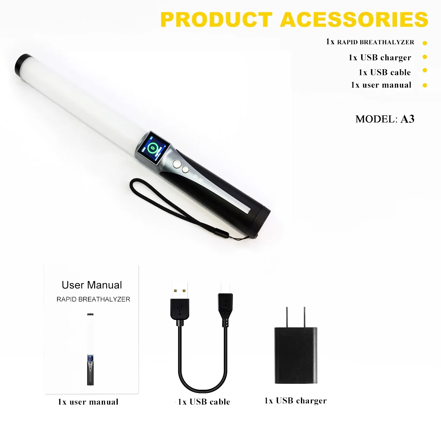 1 | Press “Test button” | "Start the test, please blow into the breathalyzer" | ||||