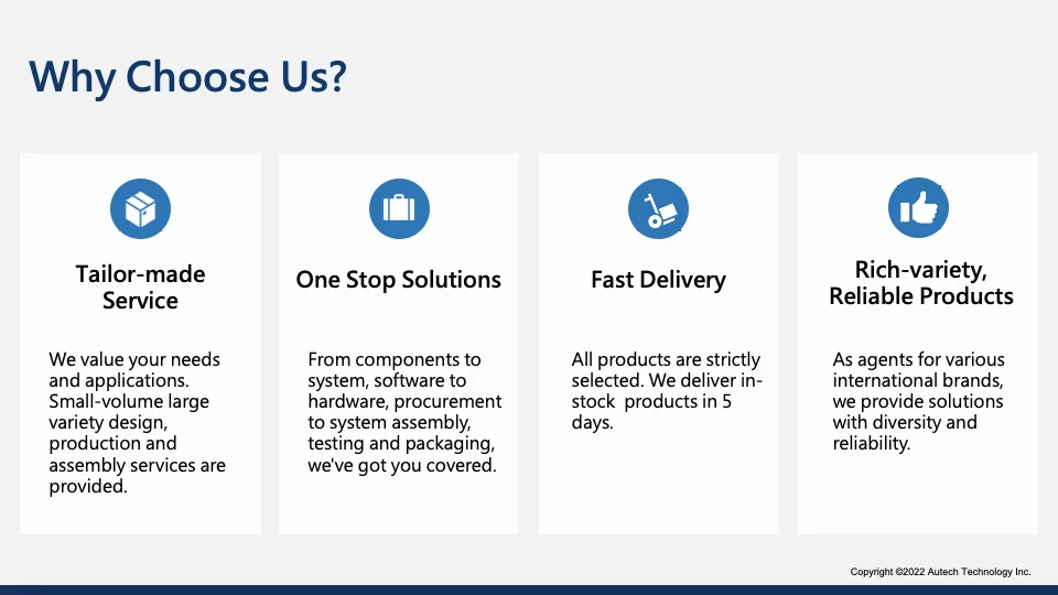 We provide one-stop service for customers, from components to systems, procurement to system assembly, along with packaging, labeling and testing services. Customization is also available to satisfy the various demand with small volume from the industry.
