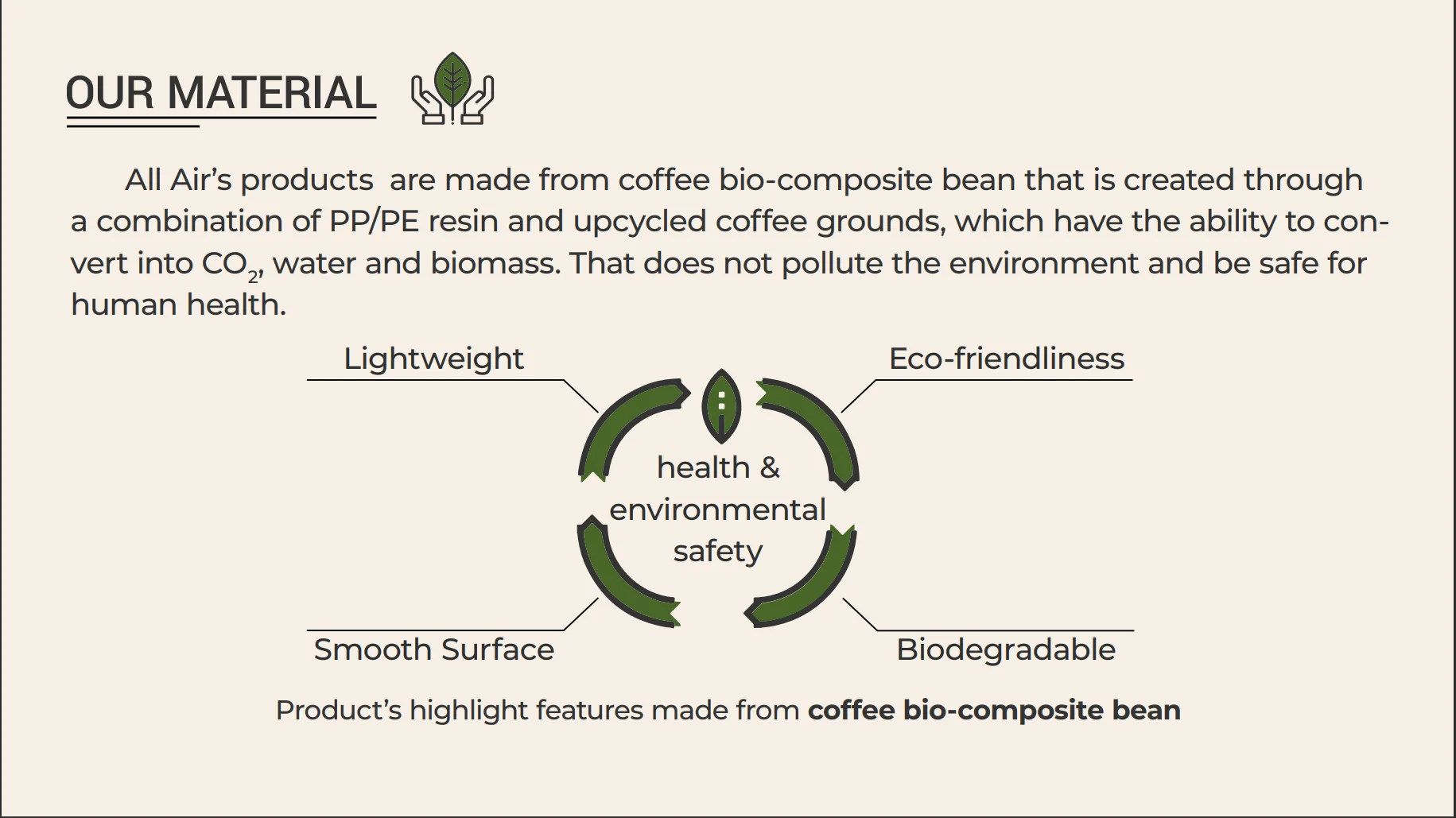 We have over five years of experience in creating sustainable and eco-friendly products made from Coffee Bio composite materials and put customers at the core of our business to provide them with the best customer experience.