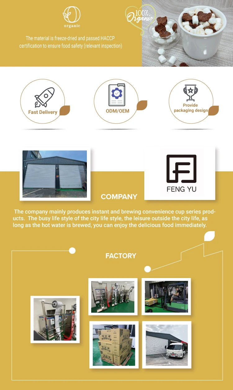 We are based in Tainan, Taiwan, starting from 2022. The company mainly produces instant and brewing convenience cup series products. There are total about 5-10 people in our office.