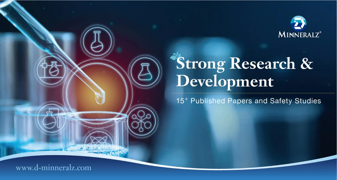 We have conducted more than 15 published papers and internal studies, including toxicity tests, bioavailability, and skin care tests. These scientific researches have proven D-MINNERALZ deep ocean minerals can: