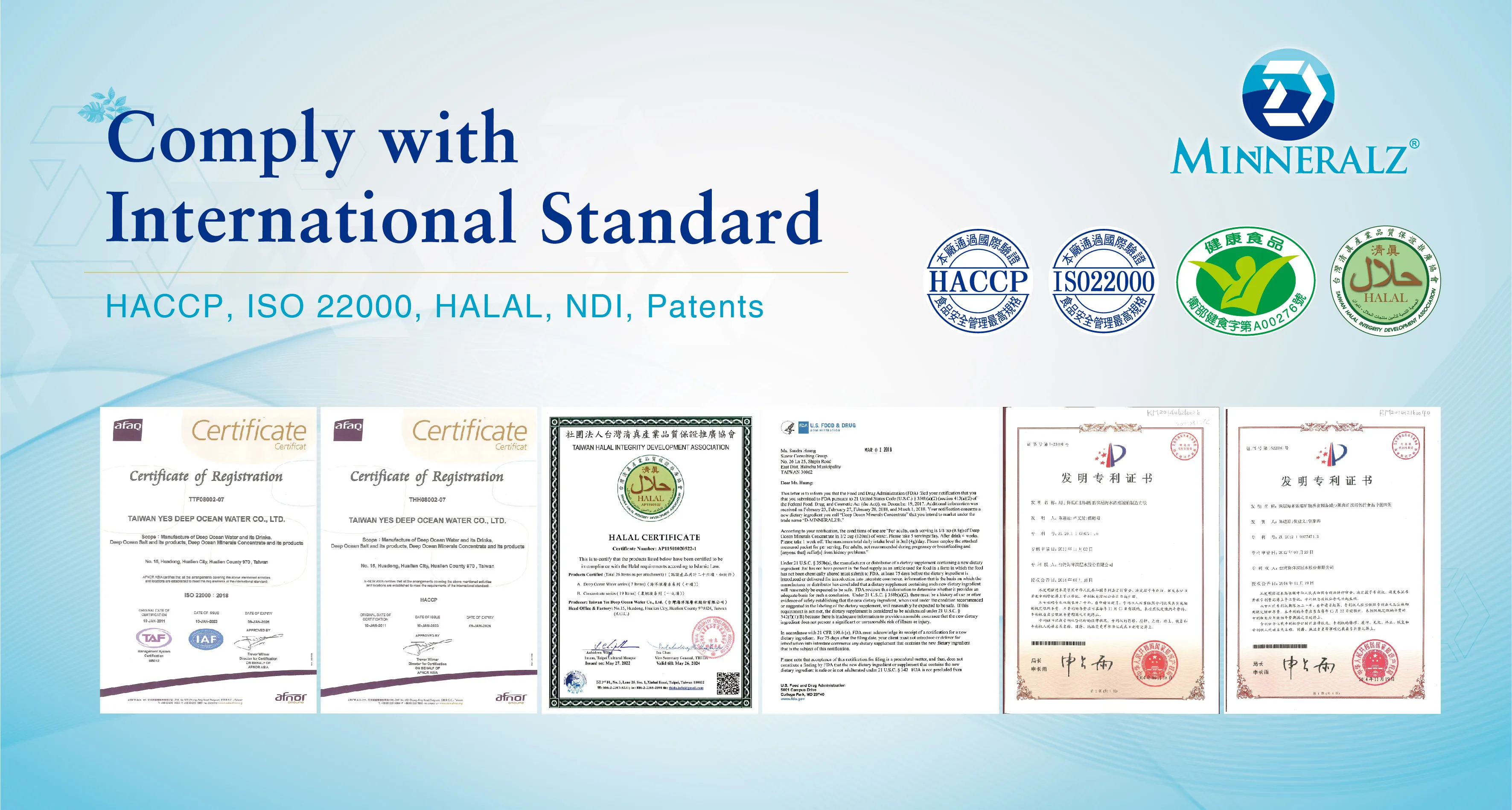 D-MINNERALZ deep ocean minerals is safe, and there is no side effect. We analyze pesticides, heavy metals and radiation from deep ocean water and strictly monitor the quality of deep ocean water. Moreover, we conducted safety studies of D-MINNERALZ, including the genetic mutation test, micronucleus analysis, chromosomal aberration test, cytotoxicity assay and subacute toxicity test. We also achieved New Dietary Ingredient (NDI) from USFDA, recognizing our continued effort on safety studies and nutritional benefits. Regarding to the skin-sensitive test, no irritation found when D-MINNERALZ applied to the skin.