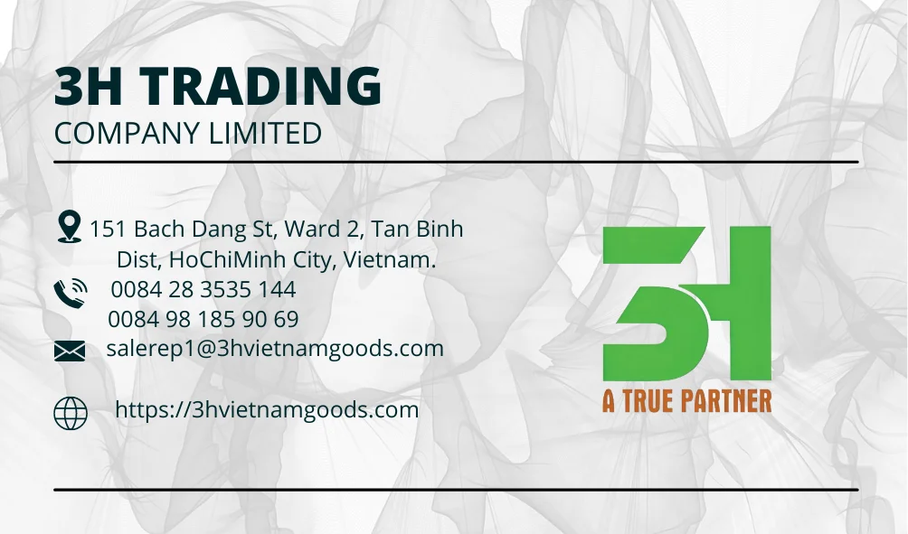 3H TRADING CO.,LTD was found in January, 2016. Our head office is located in 151 Bach Dang St, Ward 2, Tan Binh Dist, Hochiminh City, Vietnam.