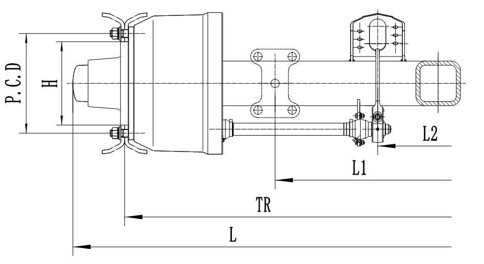 Item | Capacity | Brake | Axle Beam | Bearing | Track(mm) | P.C.D | Distance of Spring | Total length |