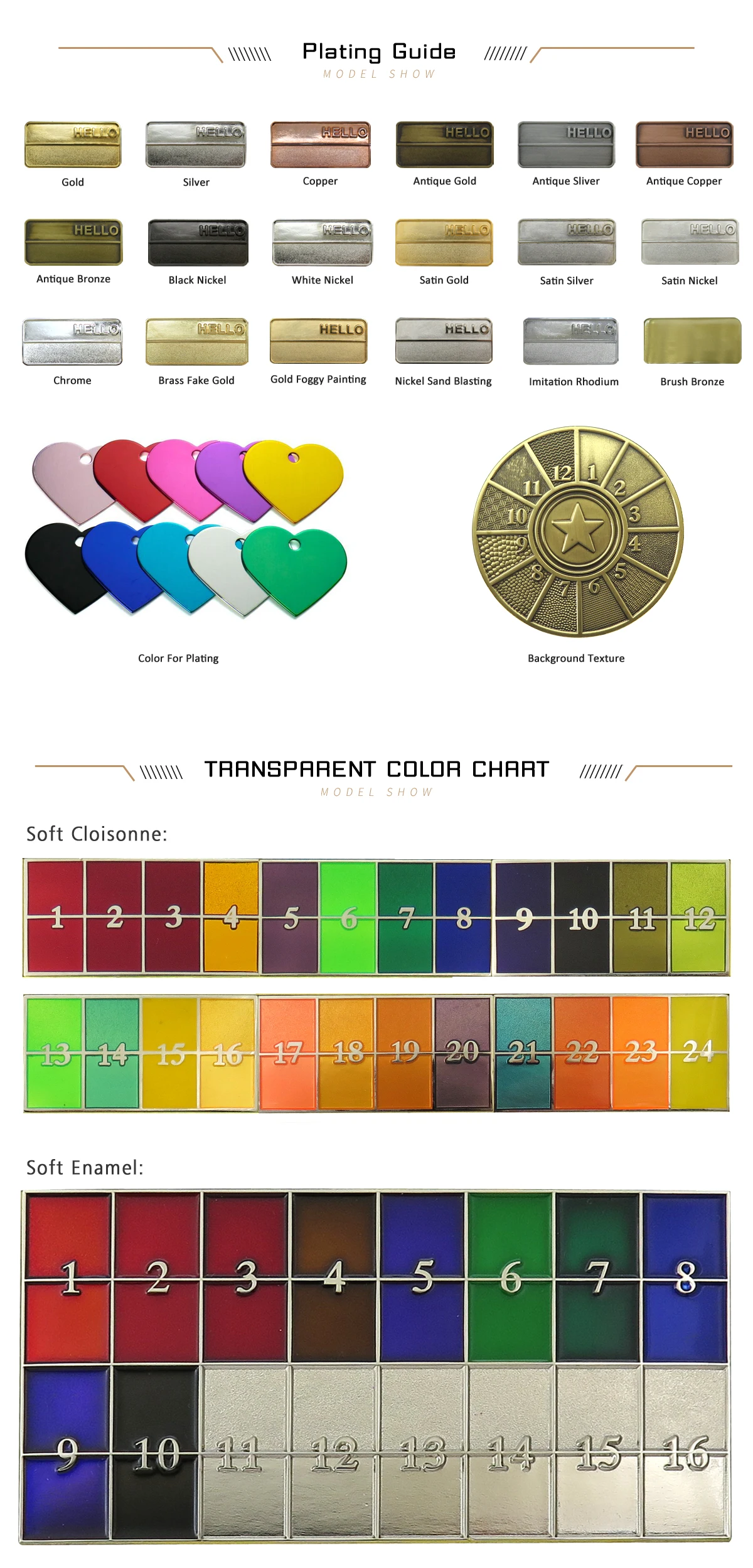 Plating | Gold ,Nickel, anti-nickel, black nickel, brass, anti-brass, copper, anti-copper, gold, anti-gold, silver, anti-silver. |