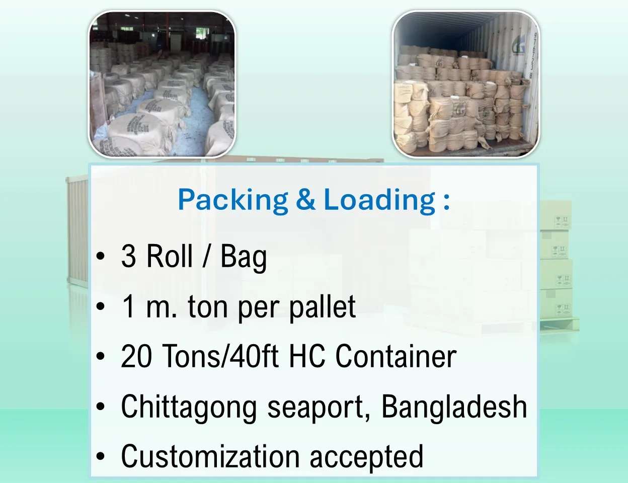 MOQ | 20 or 40 ft FCL |