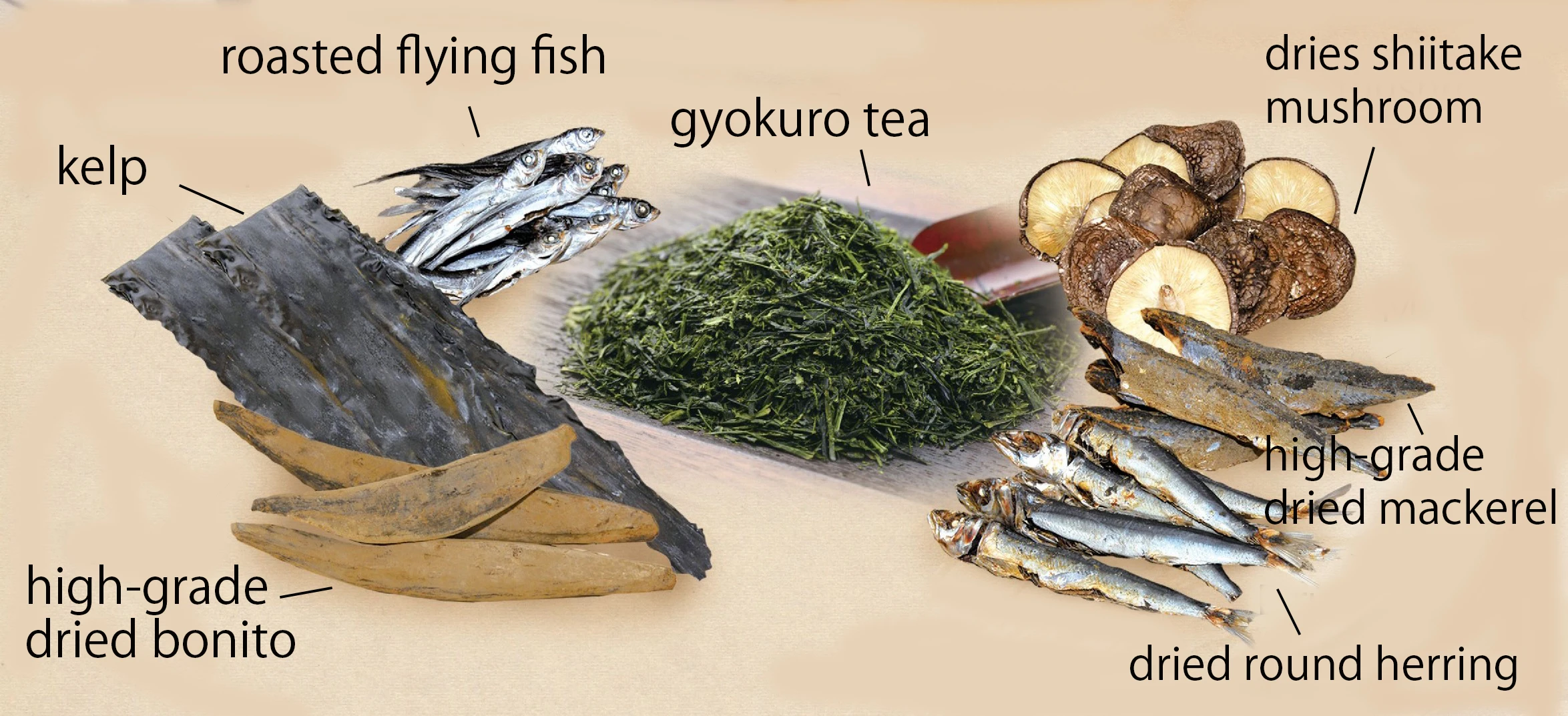 Raw materials | Salt (domestic production), flavor raw materials (dried bonito powder, dried round herring powder, dried mackerel powder, roasted flying fish powder, dries shiitake mushroom powder, kelp grains), sugar, yeast extract, starch decomposition product, green tea,powdered soy sauce, edible vegetable fats and oils, (Including some wheat, mackerel and soybeans) |