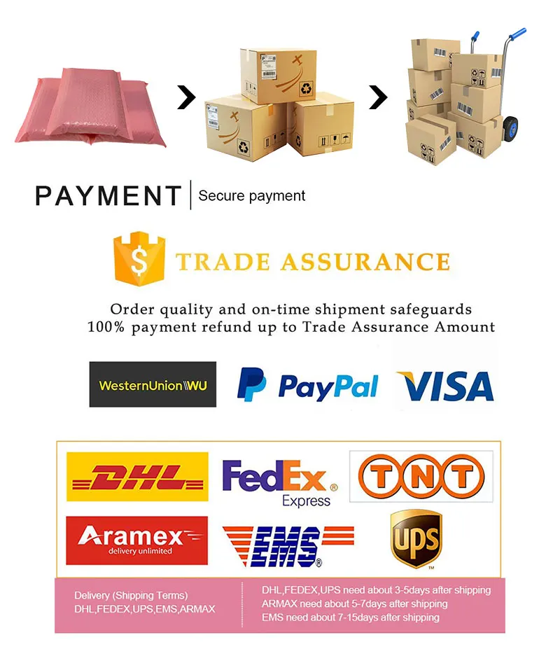 Bank T/T Transfer, PayPal, WestUnion, MoneyGram can be acceptable. |