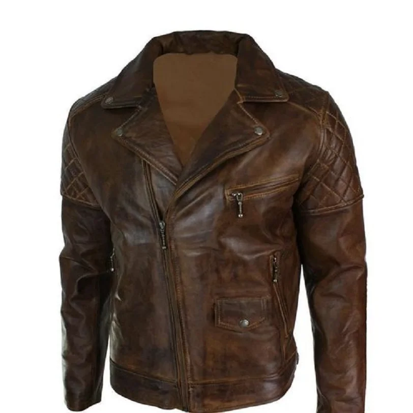 New Men Distressed Motorcycle Fashion Biker Leather Jacket