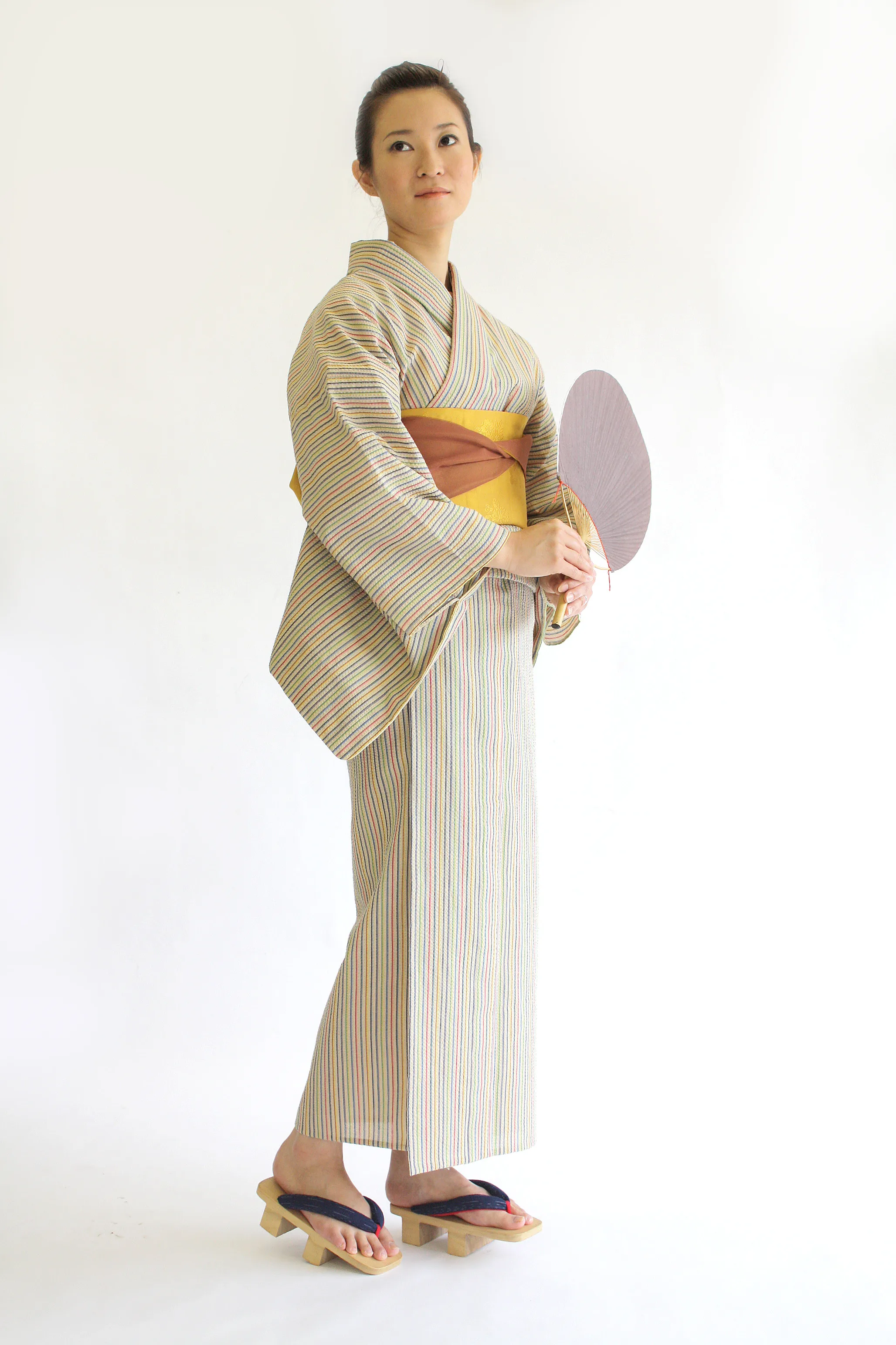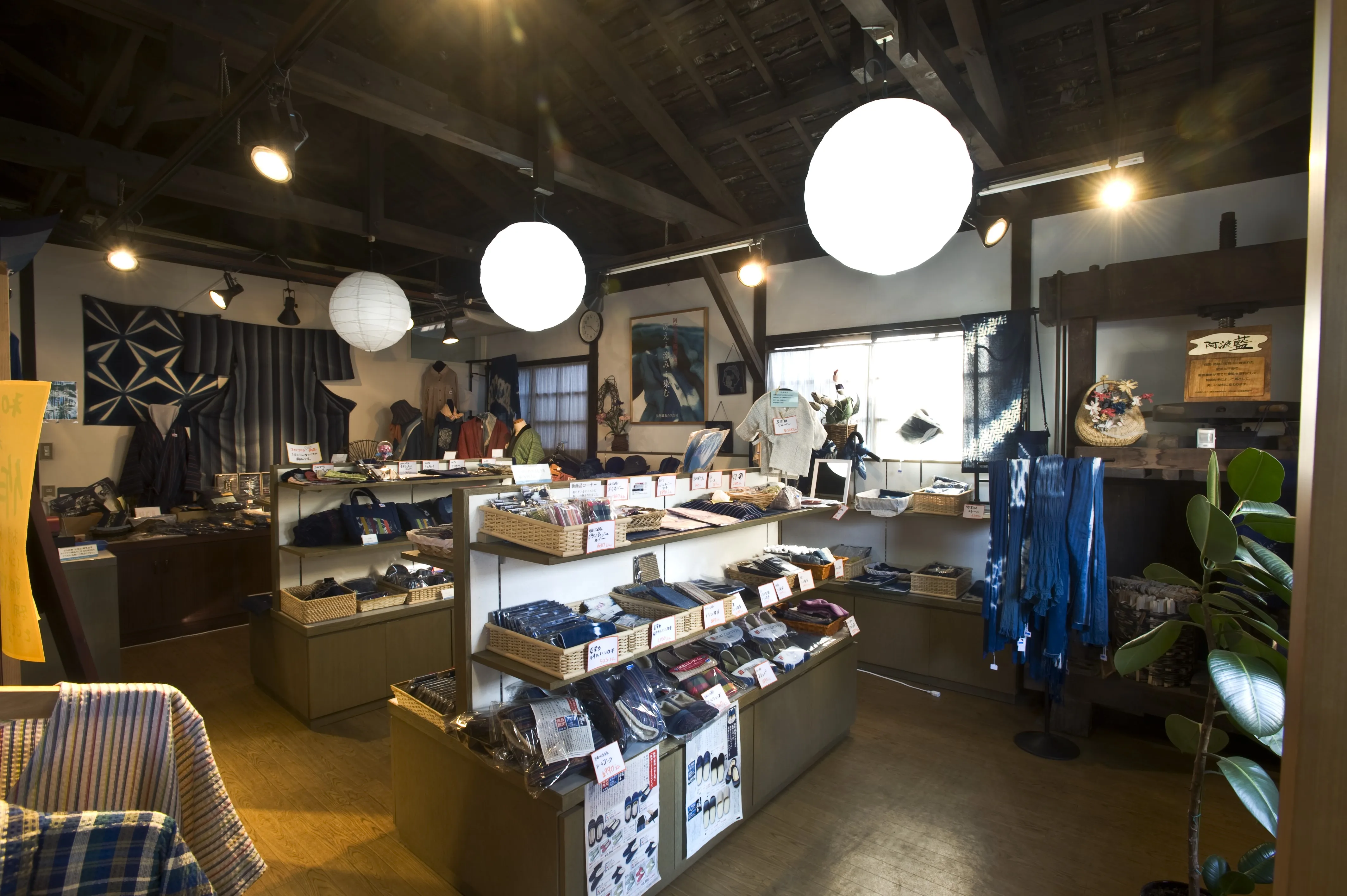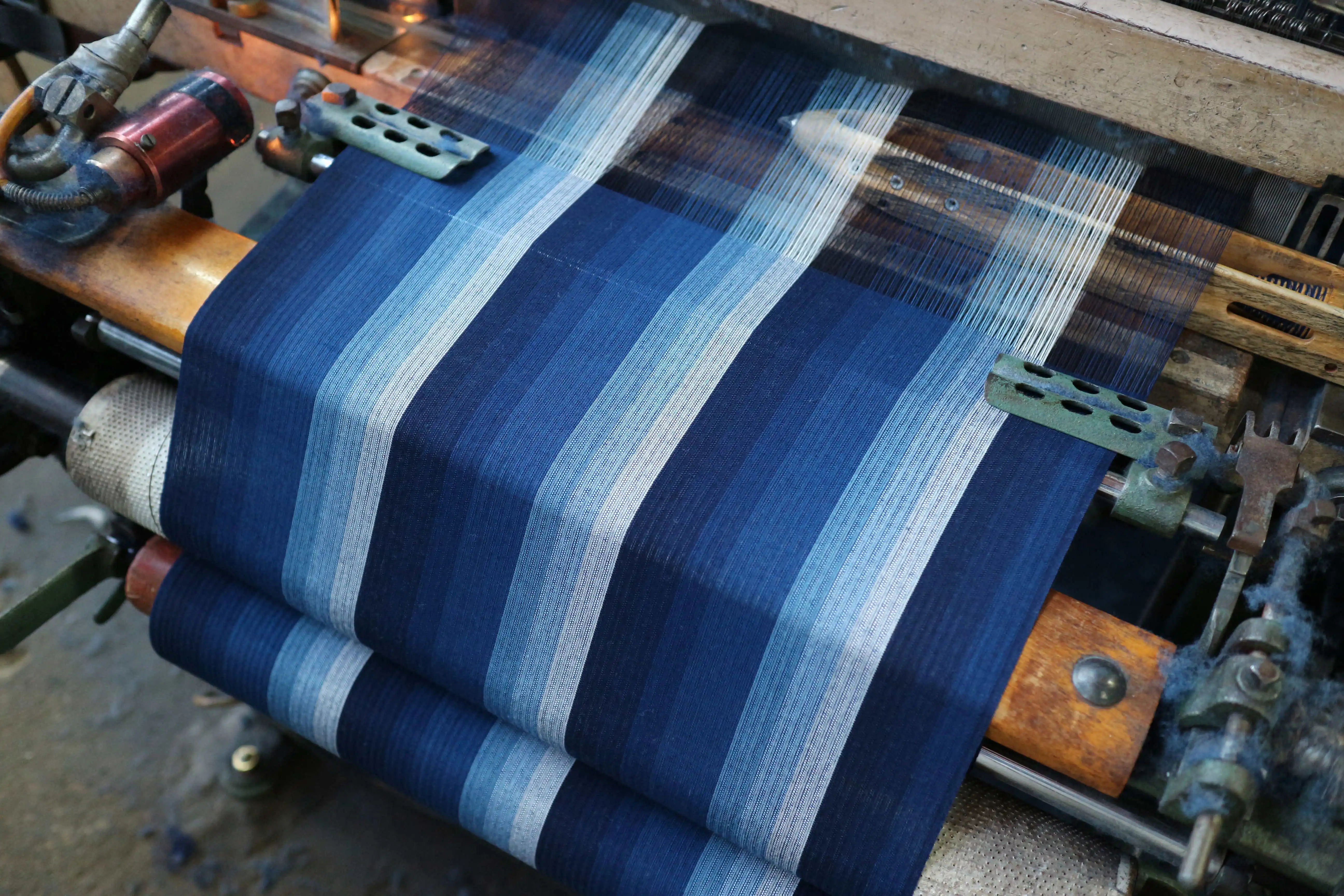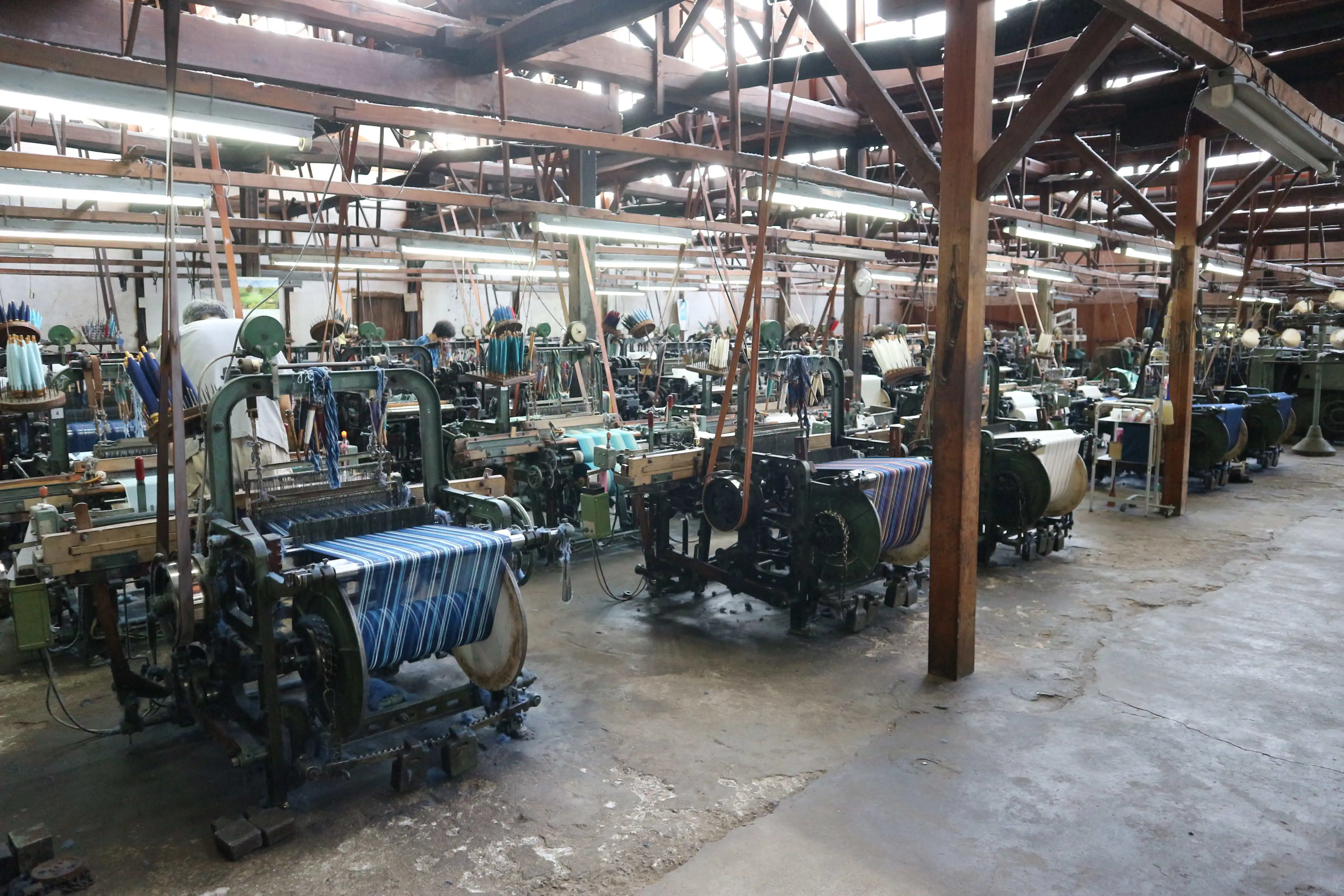 At our factory, we carry out integrated production from yarn preparation to dyeing, gluing, warping, weaving, and drying and finishing.