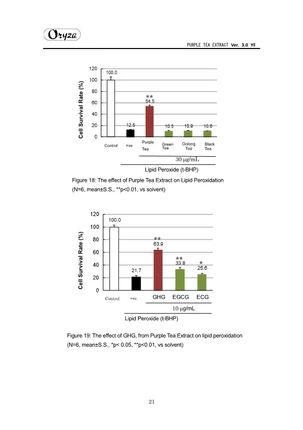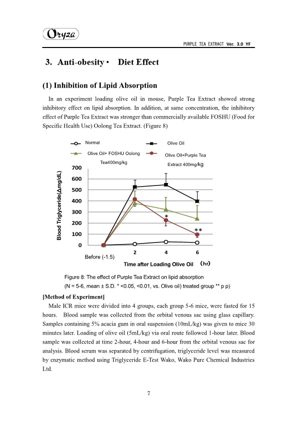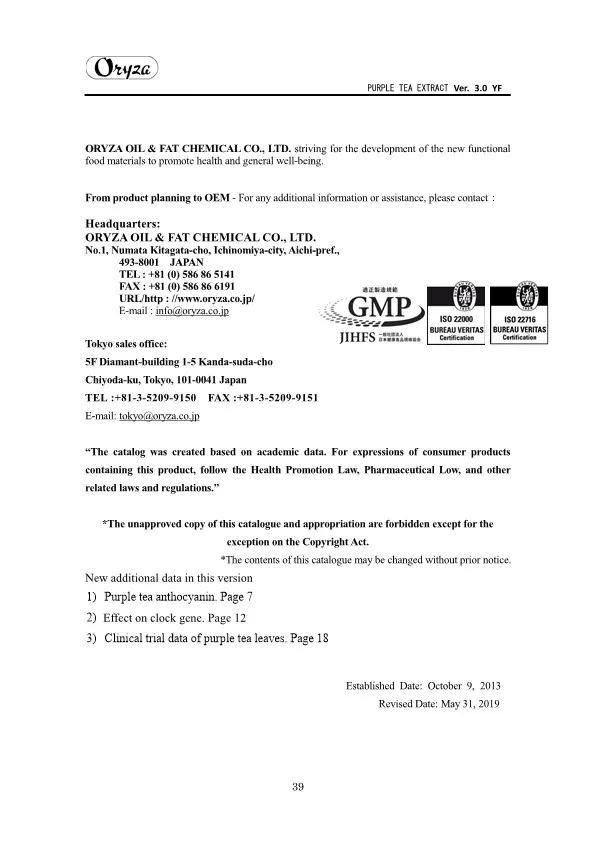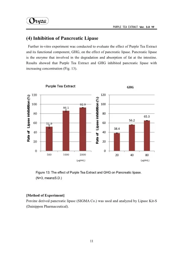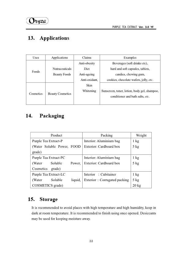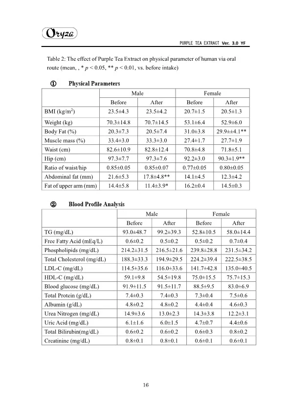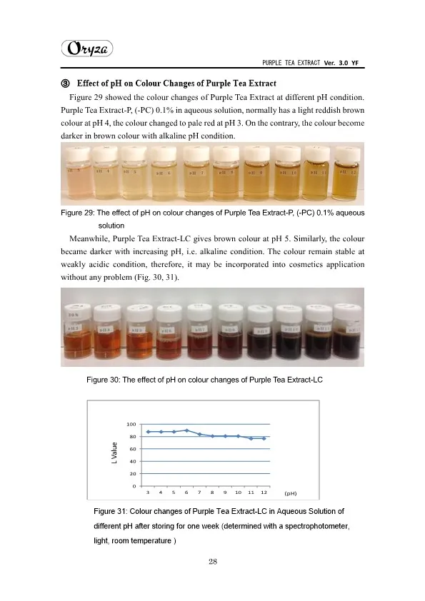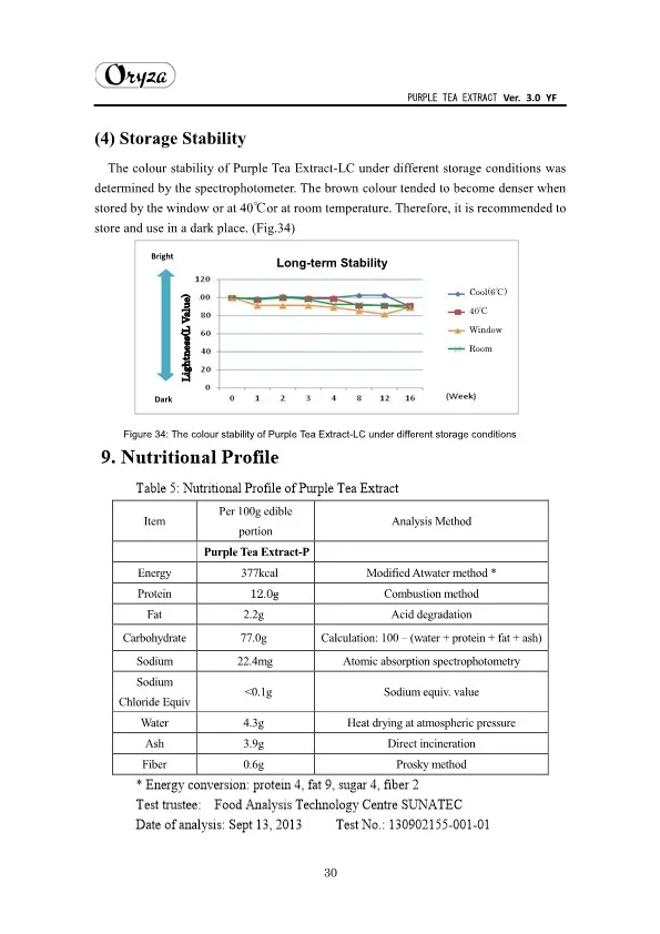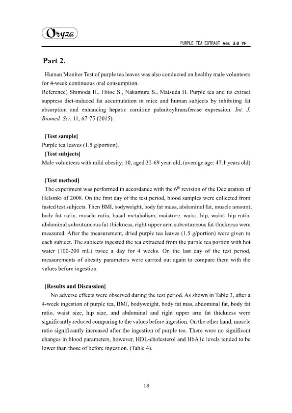 The main appeal points of PURPLE TEA EXTRACT are as follows. ・Weight controlling and beautifying effects ・Suppresses aging of skin ・Antioxidative effect ・Whitening effect