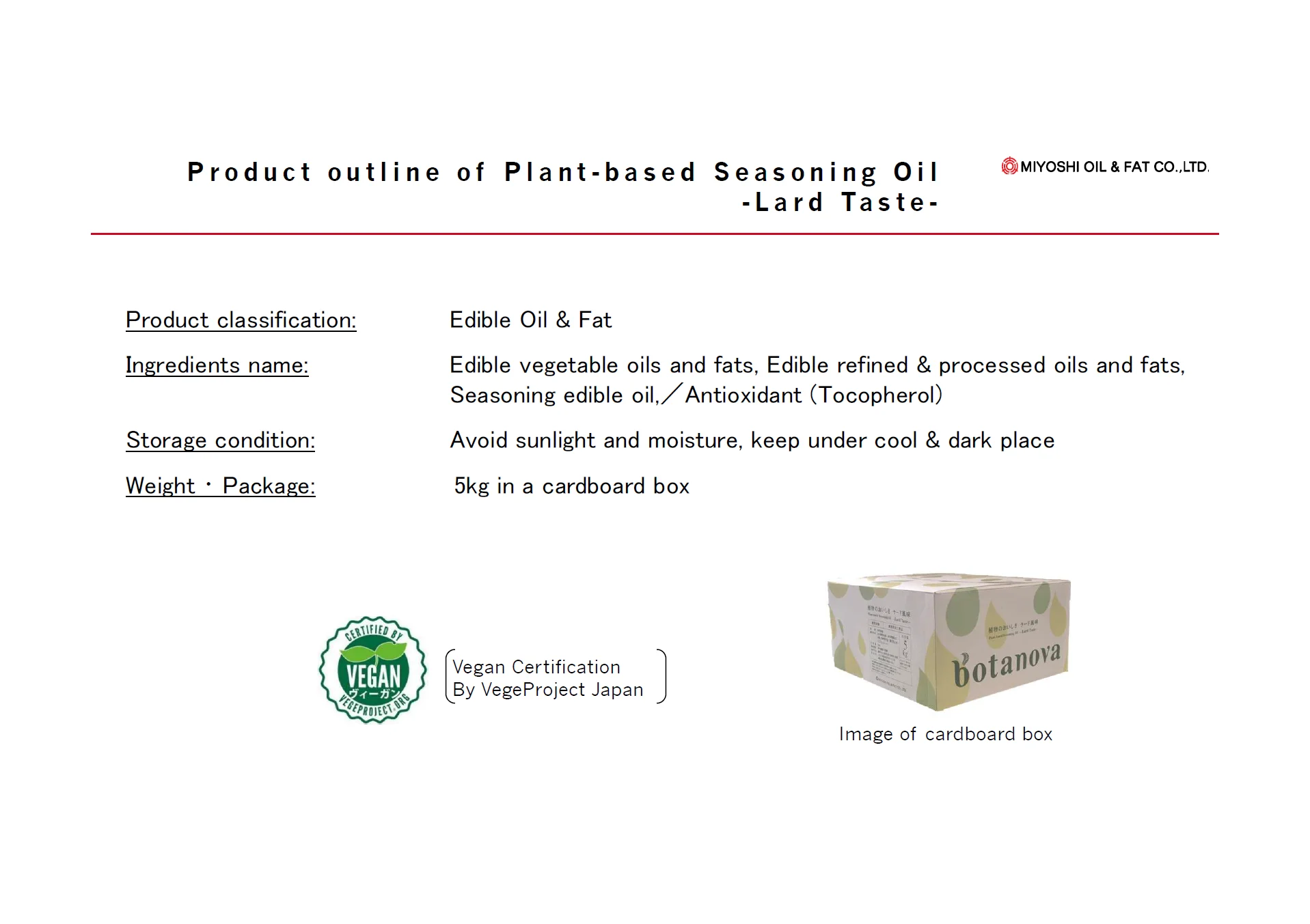 Company Name Miyoshi OIL&FAT.LTD, Tokyo, Japan