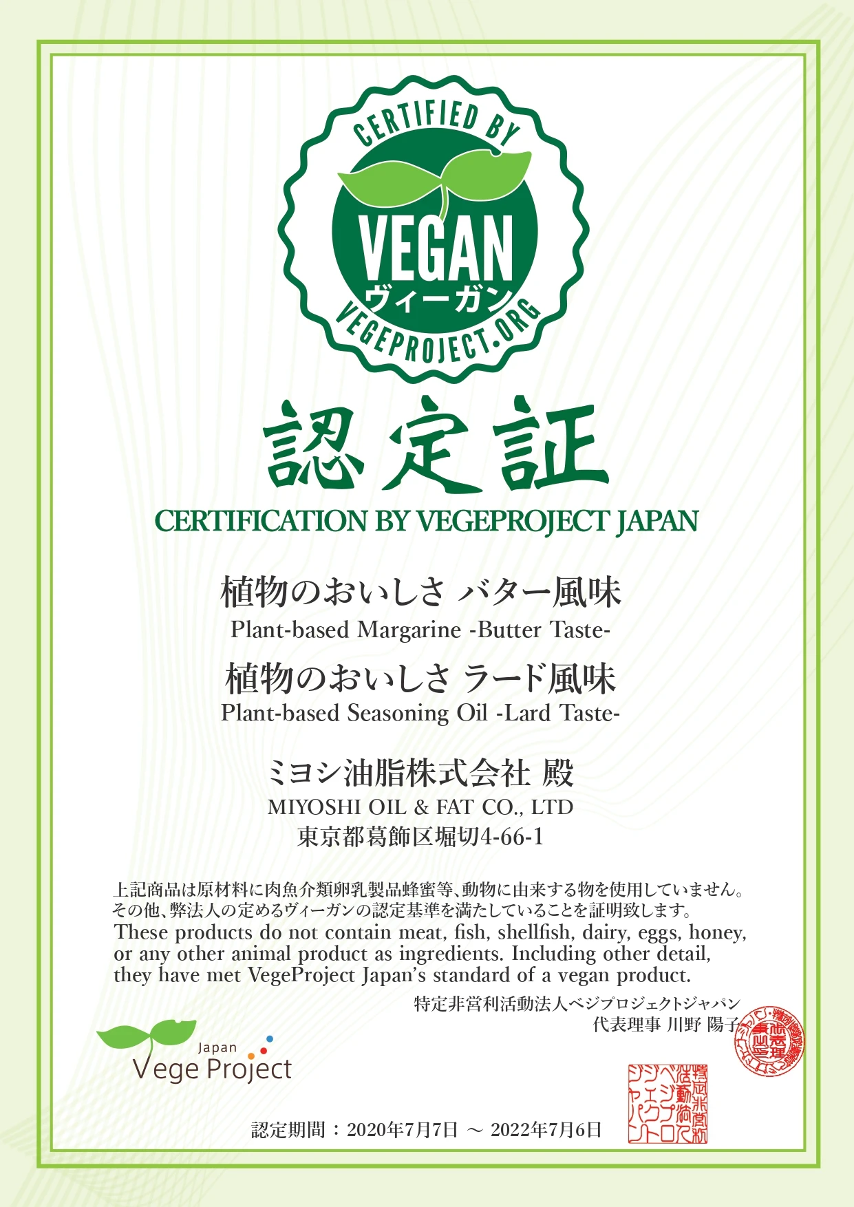 We have thoroughly analyzed the ingredients that create the aroma of animal -fat flavors that contained in conventional lard. Then using our own unique technology, such as blending and Japanese traditional method to create aroma and taste that matches animal-fat but is entirely plant-based