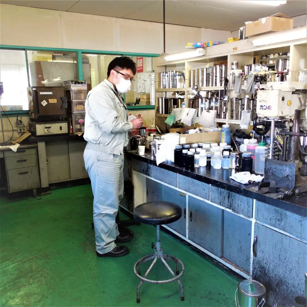 Everyone working in the factory and development department is qualified as a hazardous materials engineer of Japanese Fire Service Act.
