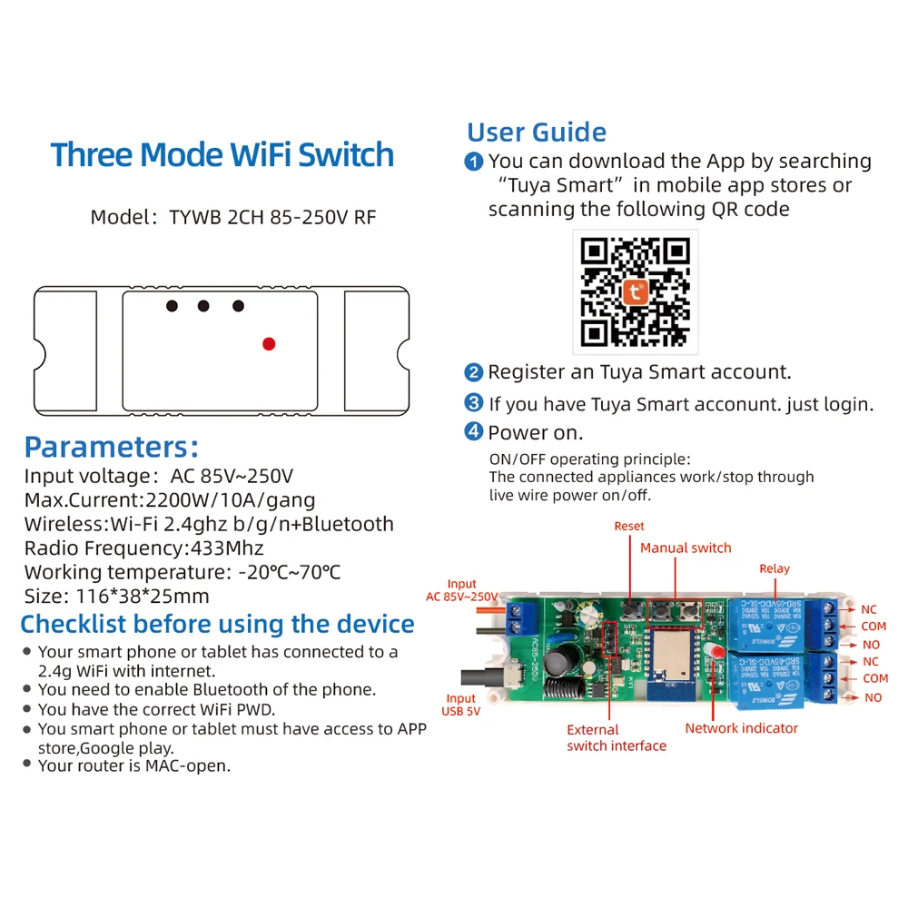 Name | Wifi Wireless Smart Relay Switch Module RF433 Remote Control |