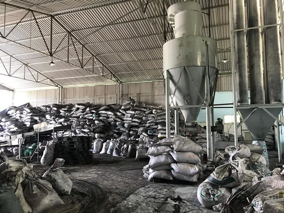 4 activation coconut shell charcoal: charcoal coconut shell sizes 3x6, 4x8 loaded into the giant rotating furnace. Oven temperature at 950OC. At high temperatures, the carbon component of coconut shell charcoal chemical reaction with water vapor and other chemicals in the rotary kiln, creating a lot of voids inside the coconut shell charcoal, forming a new product known as coconut shell activated carbon.