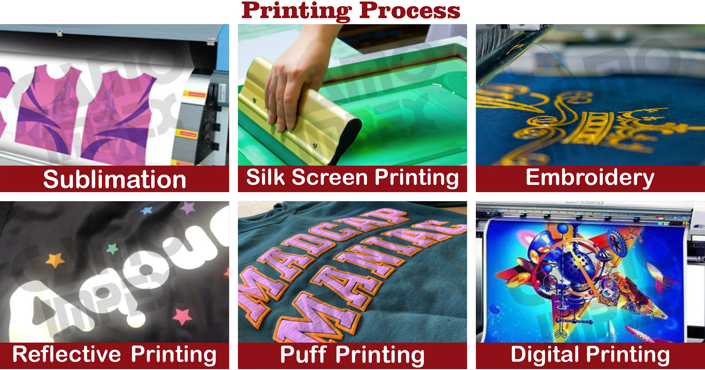 Printing | Sublimation Printing (Digital & Offset Printing), Silk Screen Print, Colorful and Personal Design,No fading, Never wash off, No color limit. |
