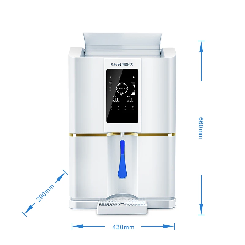 No installation and plumbing work required, leave the machine in vertical position, just plug electrical power to produce air water, its production will take a few hours depending on the humidity, the efficiency is good from 40%RH.