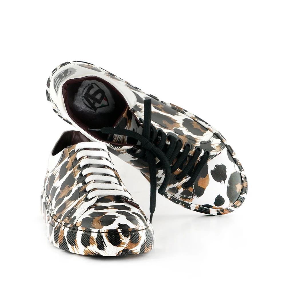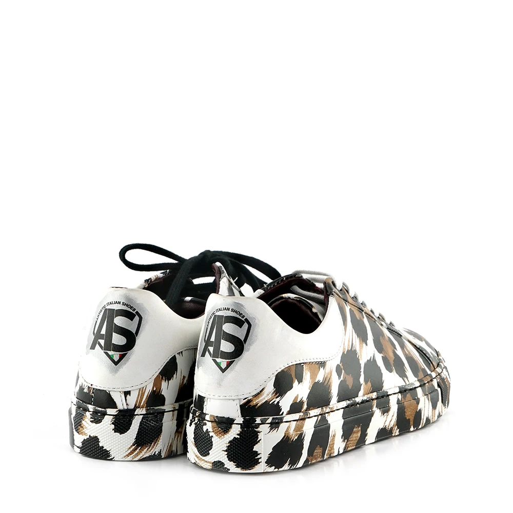 Pattern type | Handcrafted Sneaker in soft white leather,leopard-pattern hydro-dipped |