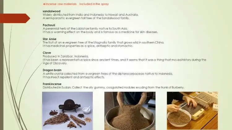 Material | alcohol, insence | alcohol, insence | alcohol, insence |