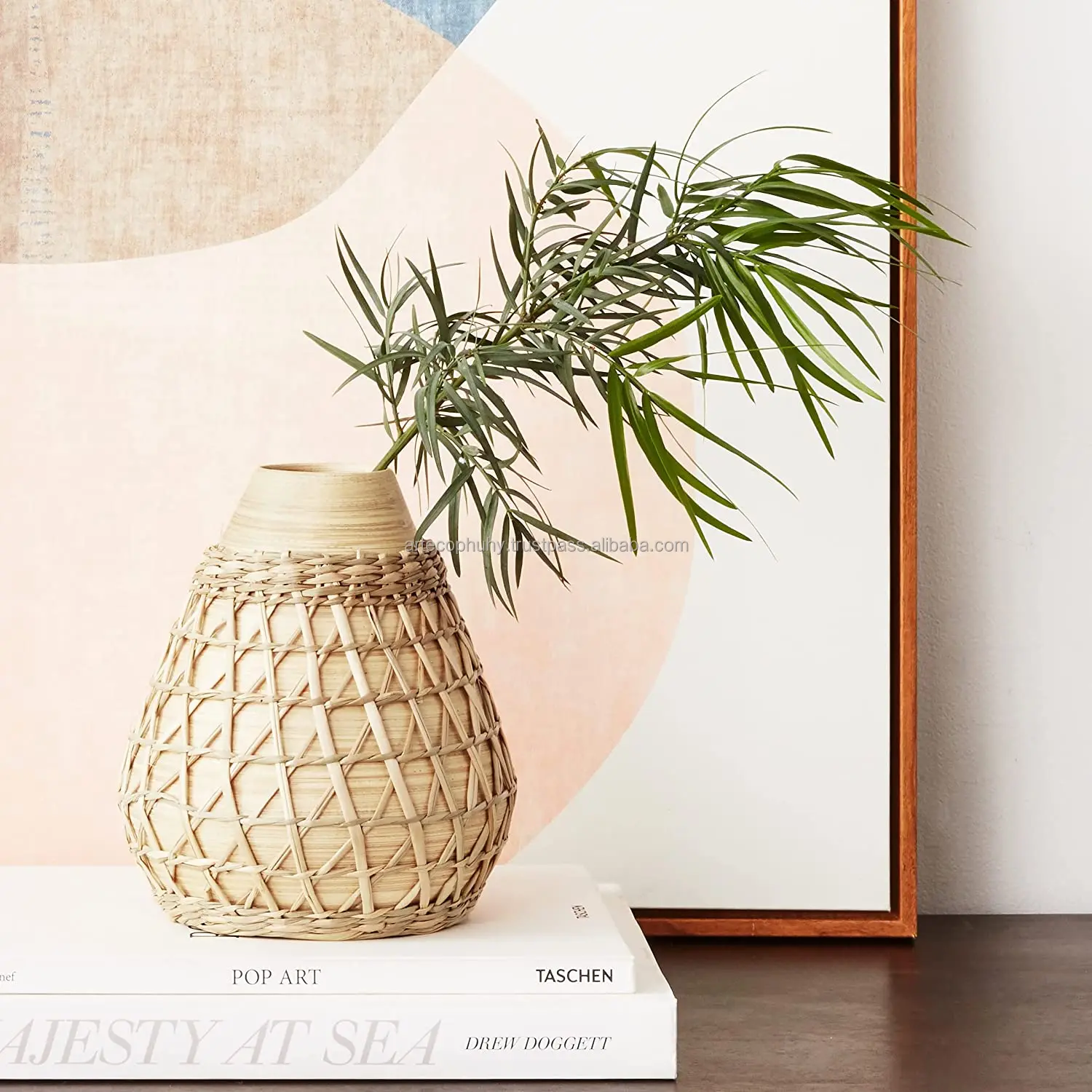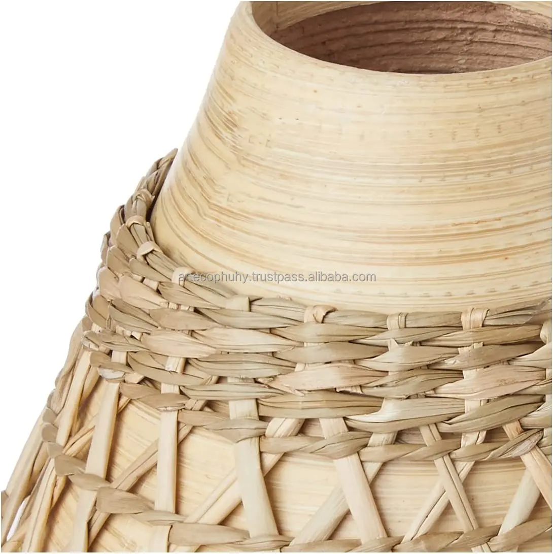 Элегантные бамбуковые вазы натурального цвета оптовая продажа с ткацким покрытием из водорослей декоративная ваза