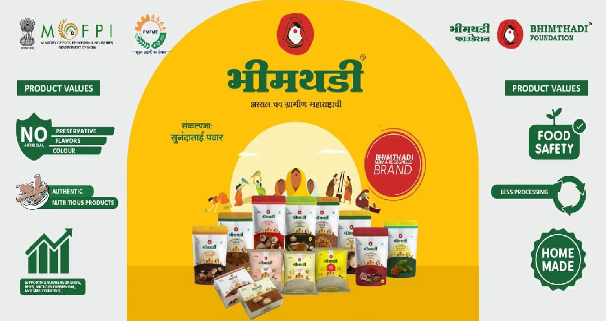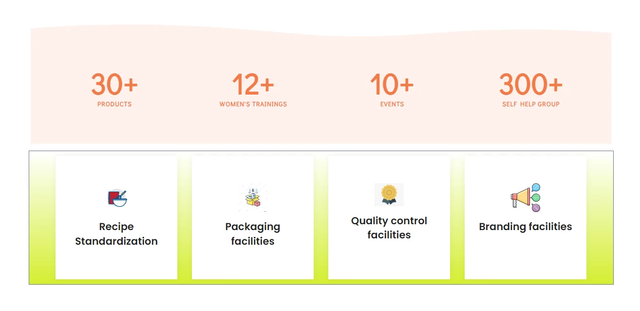its own well-known brand and is connected with around 3000 SHGs across Maharashtra, providing them with start-to-end support under a single roof.We organizes large exhibitions for these SHGs in various districts of Maharashtra to create networking with big or small entrepreneurs and provide them a platform to directly connect with customers.