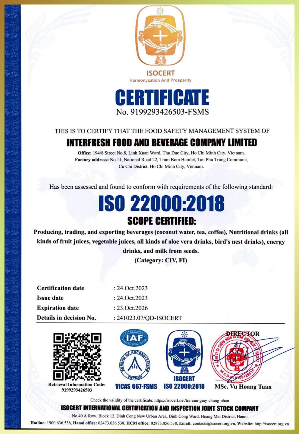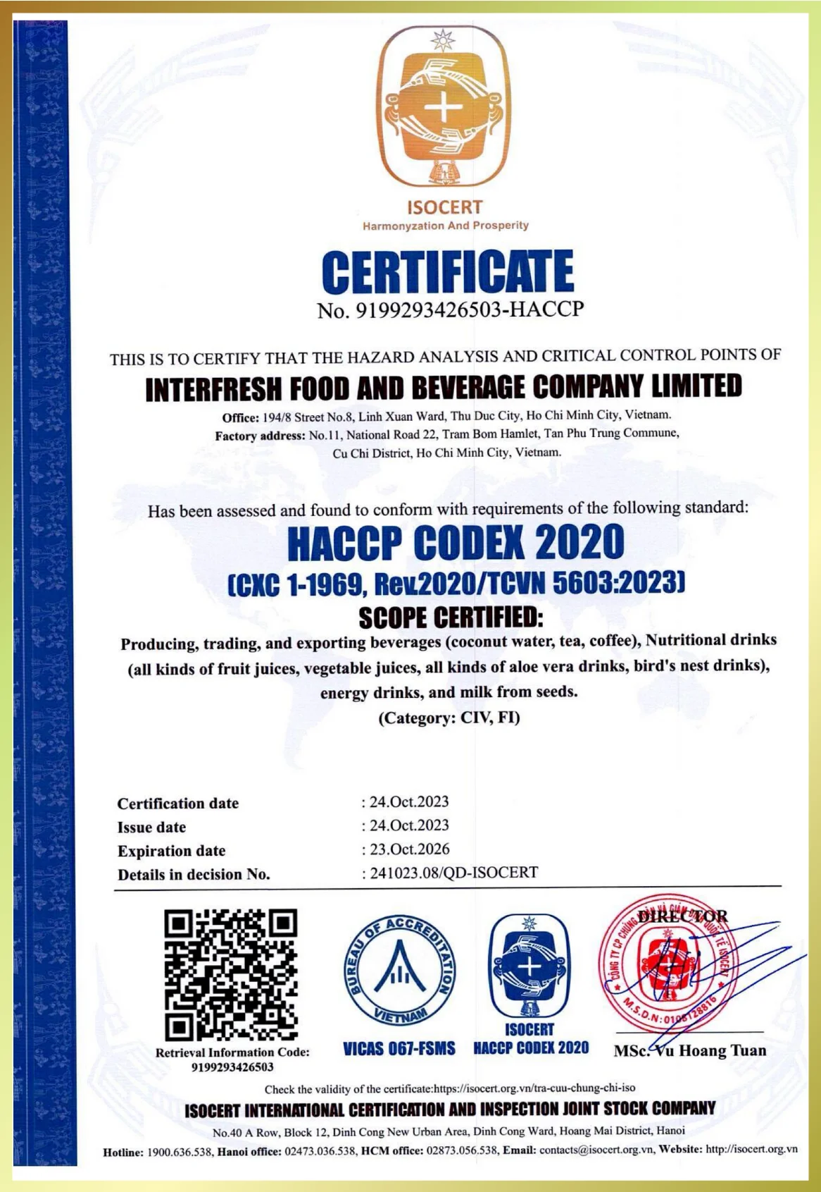 Specification | 320ml alu can, ISO, HACCP, Halal and other certifications |