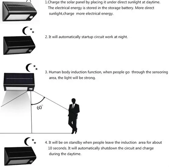 Модель 1:Солнечный включится автоматически в ночное время. Яркость света будет просто наполовину как индукционная функция.