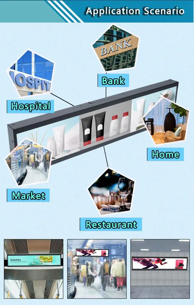ЖК-полоса бар стрейч-экран (специальный бар стрейч-экран широко применяется в основном в государственном административном зале, автобус, метро, световой рельс, железнодорожная станция, машина и т. д.