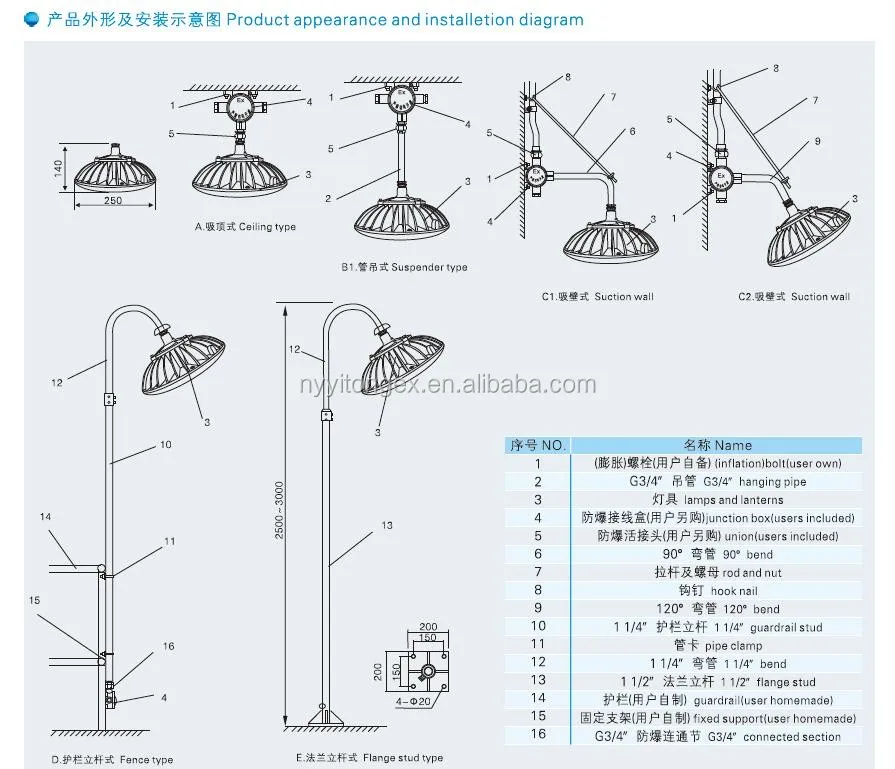 Он применим для заводов, складов, особенно подходит для электростанций, железных и стальных заводов и других влажных внутренних и наружных мест