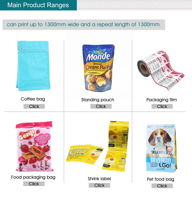О: наша фабрика может производить большинство видов гибкой упаковки, в том числе кофе мешок, корм для домашних животных мешок, мешок еды, стоять вверх мешок/мешок, мешок застежки-молнии, мешок носика, мешок плоского дна, задняя запечатка мешок/мешок, рулон пленки, термоусадочный рукав и так далее.