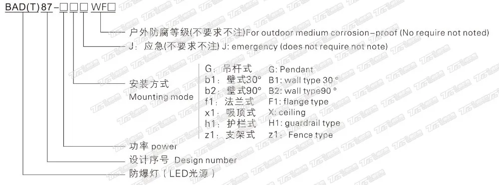 Это устройство предназначено для работах со взрывоопасным газом или поток атмосфер для кошек МИС IIB, классификация температуры от T1 для T3, в основном применяется для зоны 1 и зоны 2, или взрывоопасная или горючая пыль зоны 21 и 22, используется для освещения в помещении и на открытом воздухе.