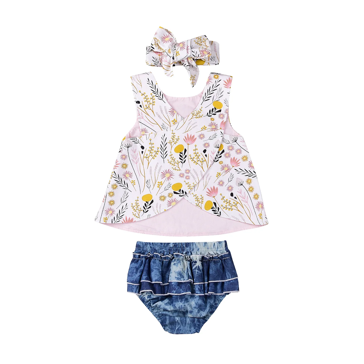 комбинезон для маленьких девочек + штаны + повязка на голову с узлом; комплект из 3 предметов US $4.20-$6.00
